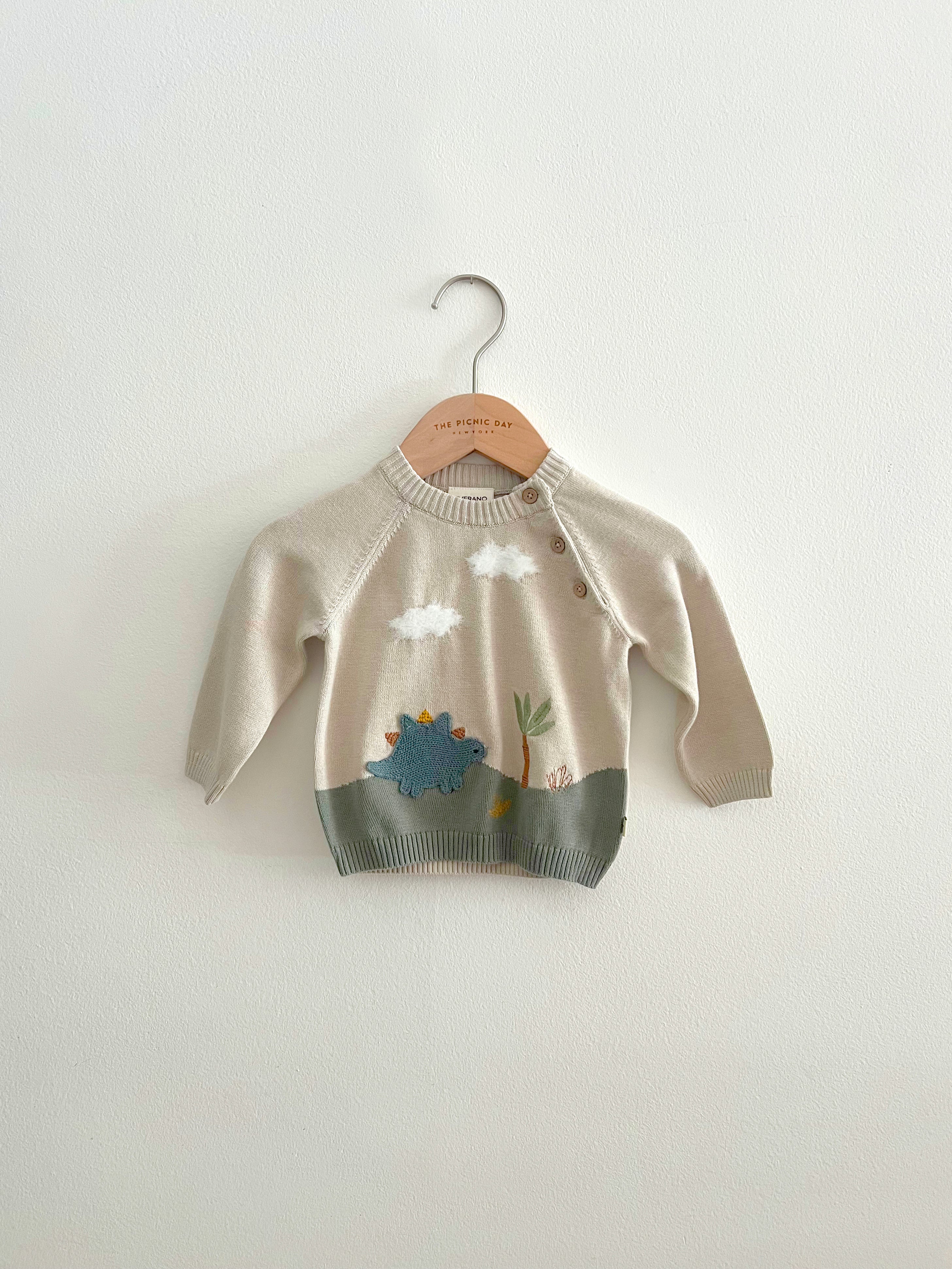 Dino Applique Button Baby Pullover Sweater