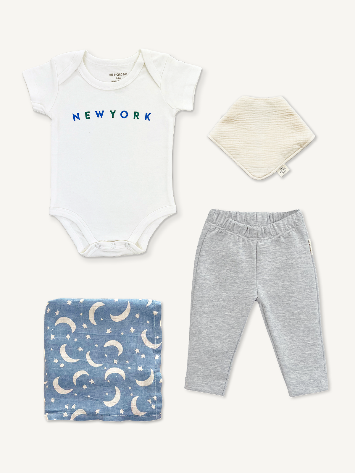 Our First Outfit Bundle is a cute assortment of essential items made with organic fabrics. A great gift to support the first few months of the little one's journey. Comes with a beautiful white gift box with TPD logo.