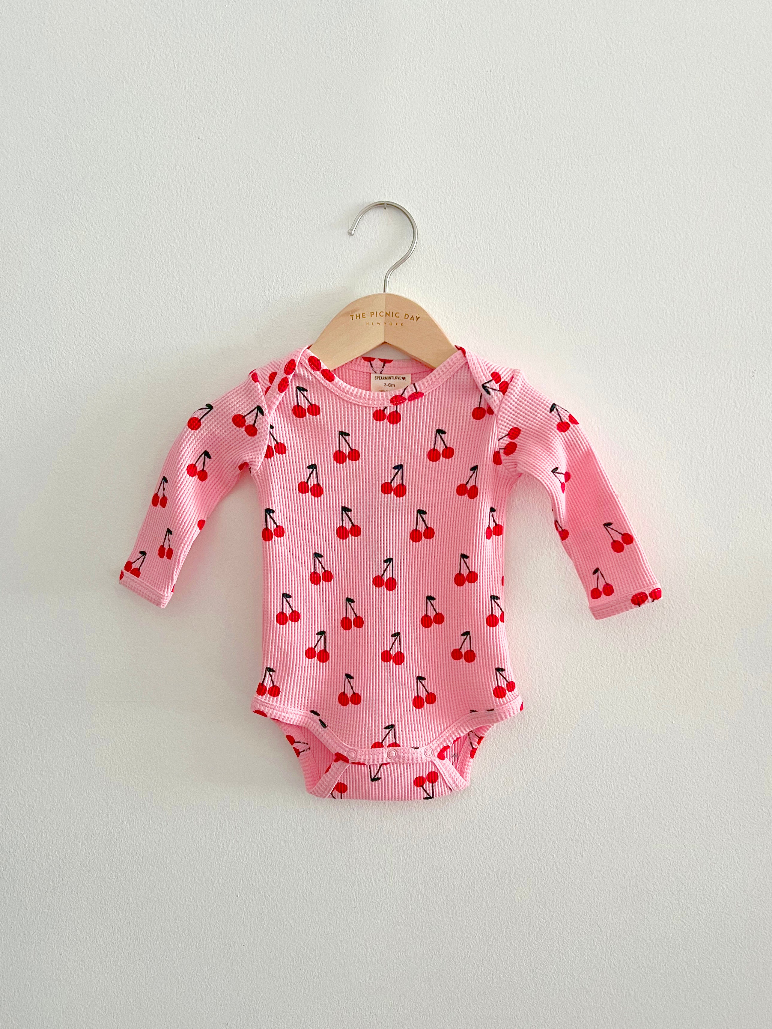 Organic Waffle Bodysuit, Pink Cherry