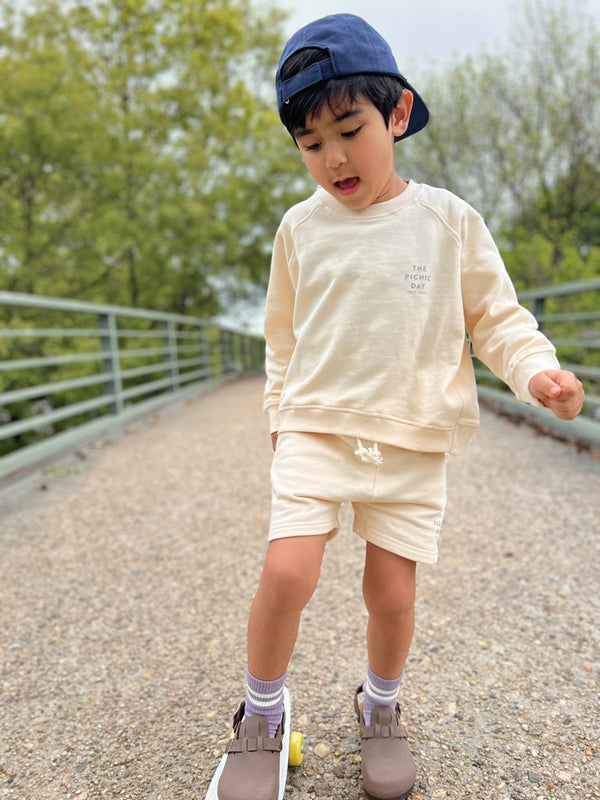 The minimal looking shirt made with organic cotton French terry. Easy to slip on and goes well with any bottom. Perfect for everyday activities.