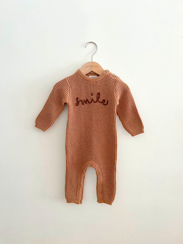 Smile Embroidered Chunky Sweater Knit Baby Jumpsuit