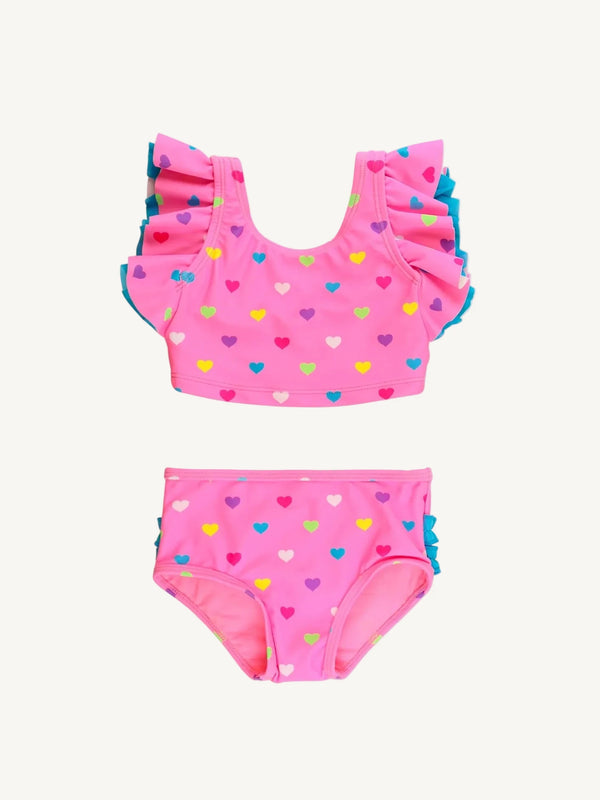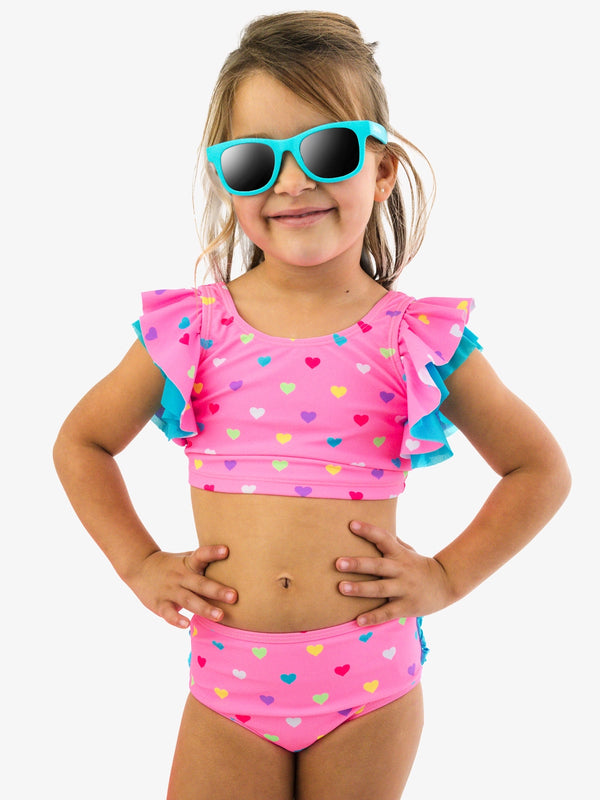 Girls Neon Pink Hearts Two Piece Tankini