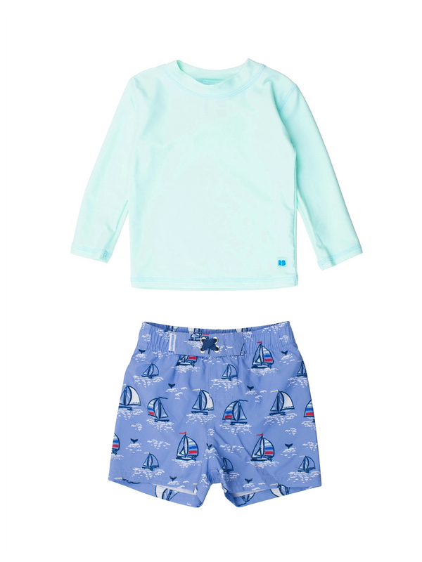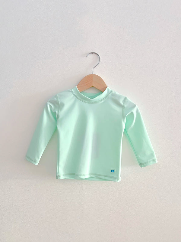 This long sleeve rash guard top is great for active little guys. The UPF 50+ sun protective fabric and full coverage fit will keep him safe from the sun's harmful rays. The classic design makes it easy to mix and match with your favorite swim trunks.