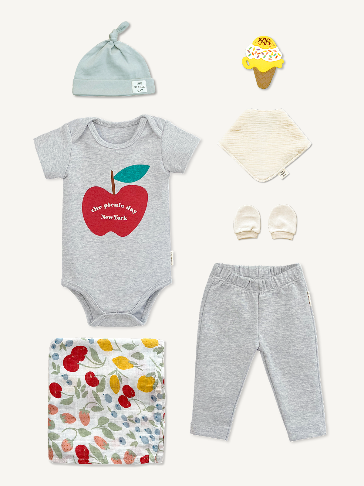 Our Ready To Roll Bundle is a cheerful gift set made with softest organic cotton fabrics and cute designs. Everything that a new mom needs in one box. Makes a perfect shower gift. Comes with a beautiful gift box with gold TPD logo.
