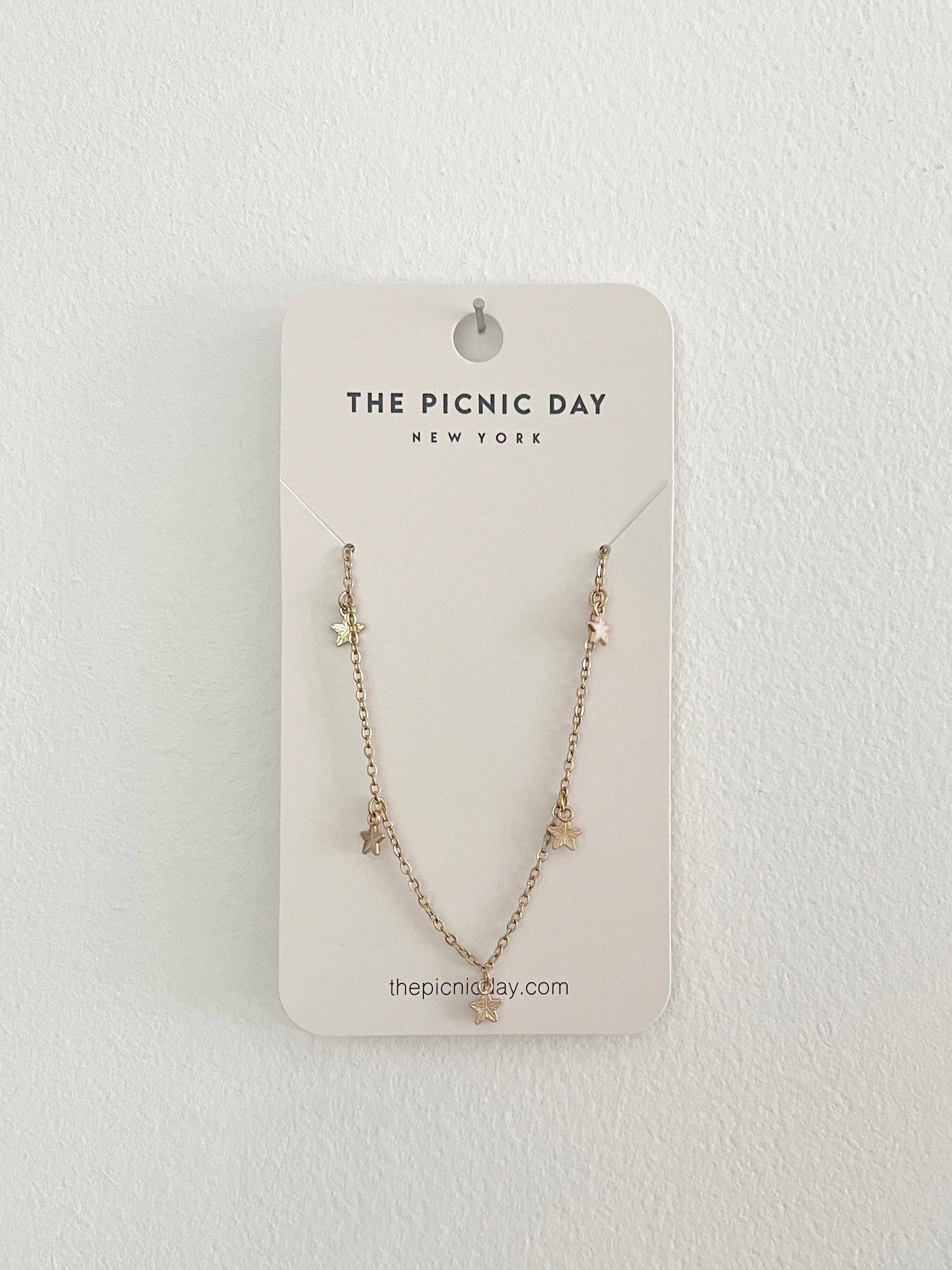 Enamel colorful stars necklace with gold skinny chain. About 15-17” (40-45cm) Adjustable length.