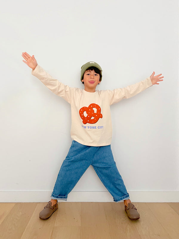 The iconic New York snack on a T-shirt! Enjoy the catchy look and the soft cotton material all year round. Naturally hypoallergenic.