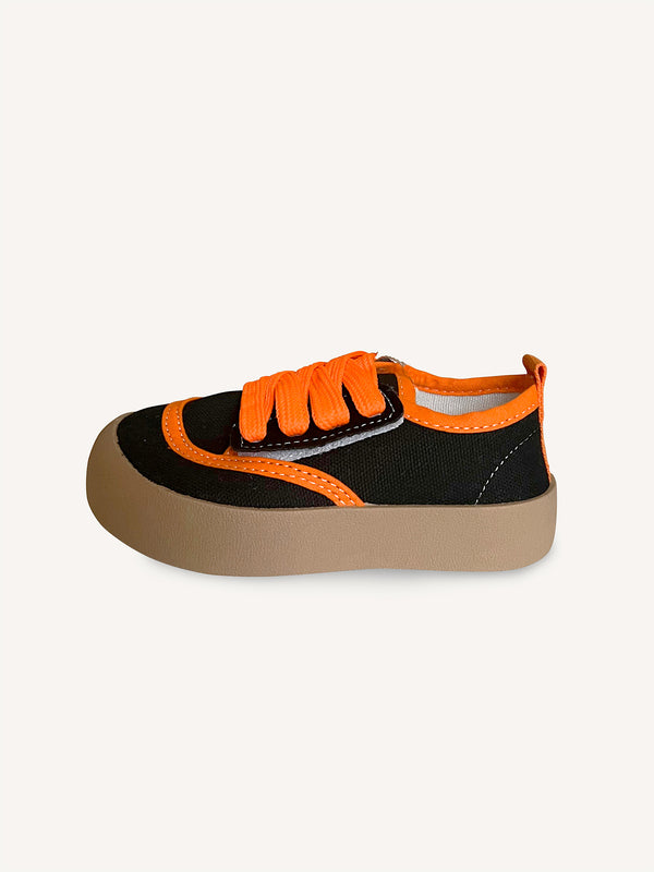 Let's hit the playground with these colorful sneakers! With its round form it is super adorable and comfy as well. Sturdy material is perfect for active children. The hidden velcro closure makes it easy to put on and off.