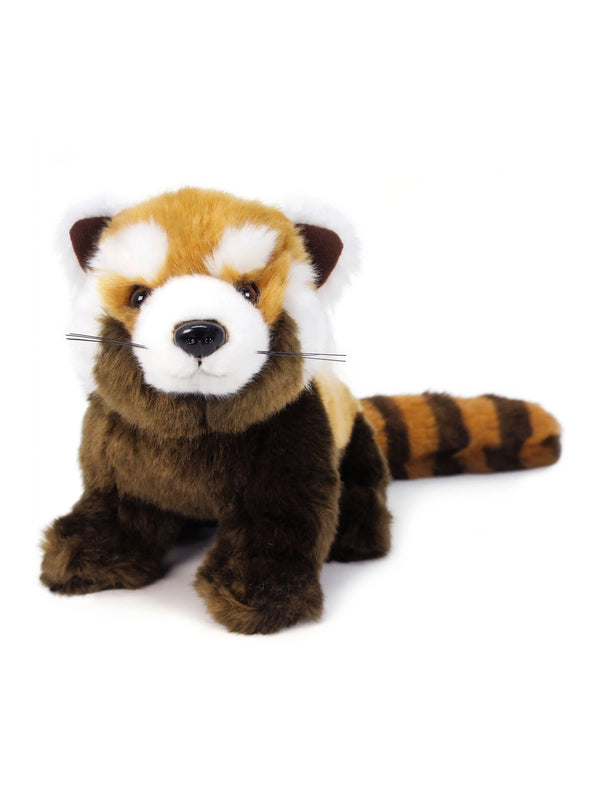 This red panda plush has cute black eyes and long, soft striped tail. Who wants to cuddle??
