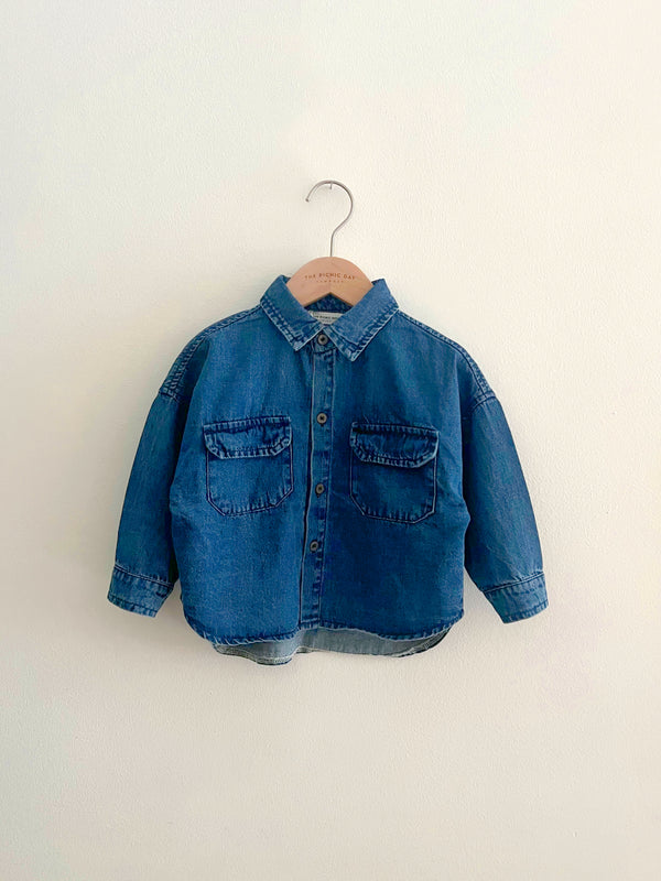 The super basic, everyday item with chic oversized fit. Looks great with a T-shirt inside, or buttons closed.