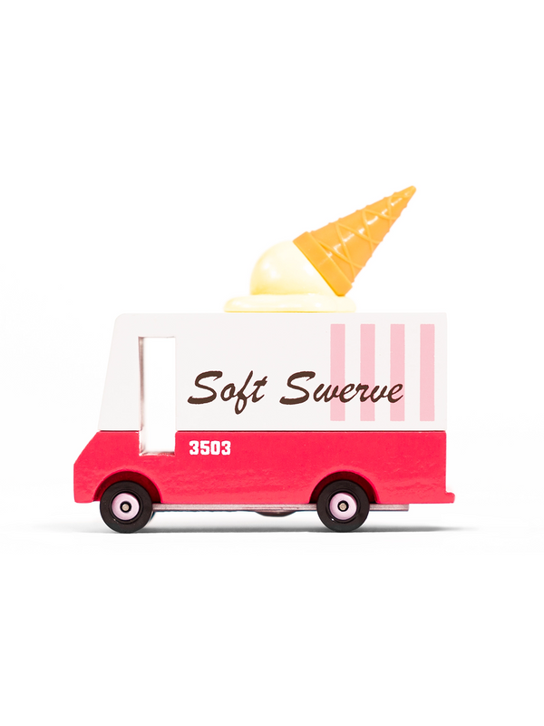 Soft-serving up good looks. As far as a symbol of simpler times and a carefree way to stuff sugar and calories in your childhood, you can’t beat the ice cream truck. We popped a melty top, added a bright pink base, sprinkled a pun, and voila! Iconic toy made. No ice cream truck jingle – you’re welcome.