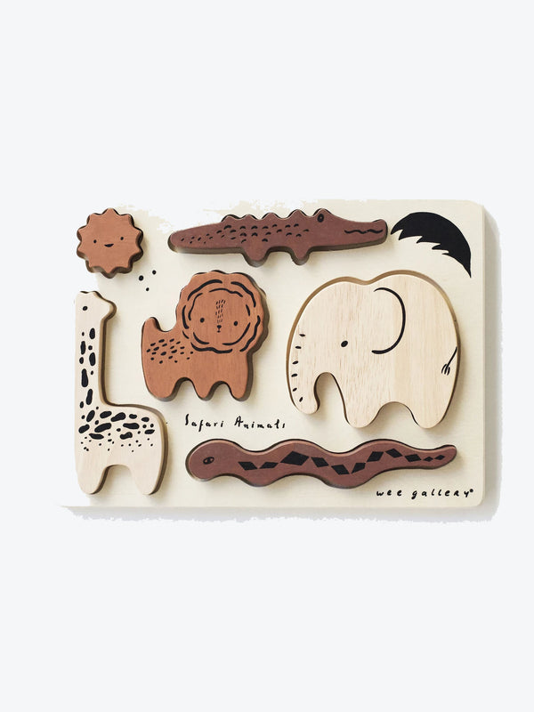 This beautiful six piece Wooden Puzzle is perfect for so many kinds of play! Solving the tray puzzle is just the beginning. You can also use the adorable wooden animals as play time characters in this themed Safari set. Before you know it, your child will be making up their own games to play with the six wooden pieces and illustrated board. Made from sustainably sourced rubberwood.