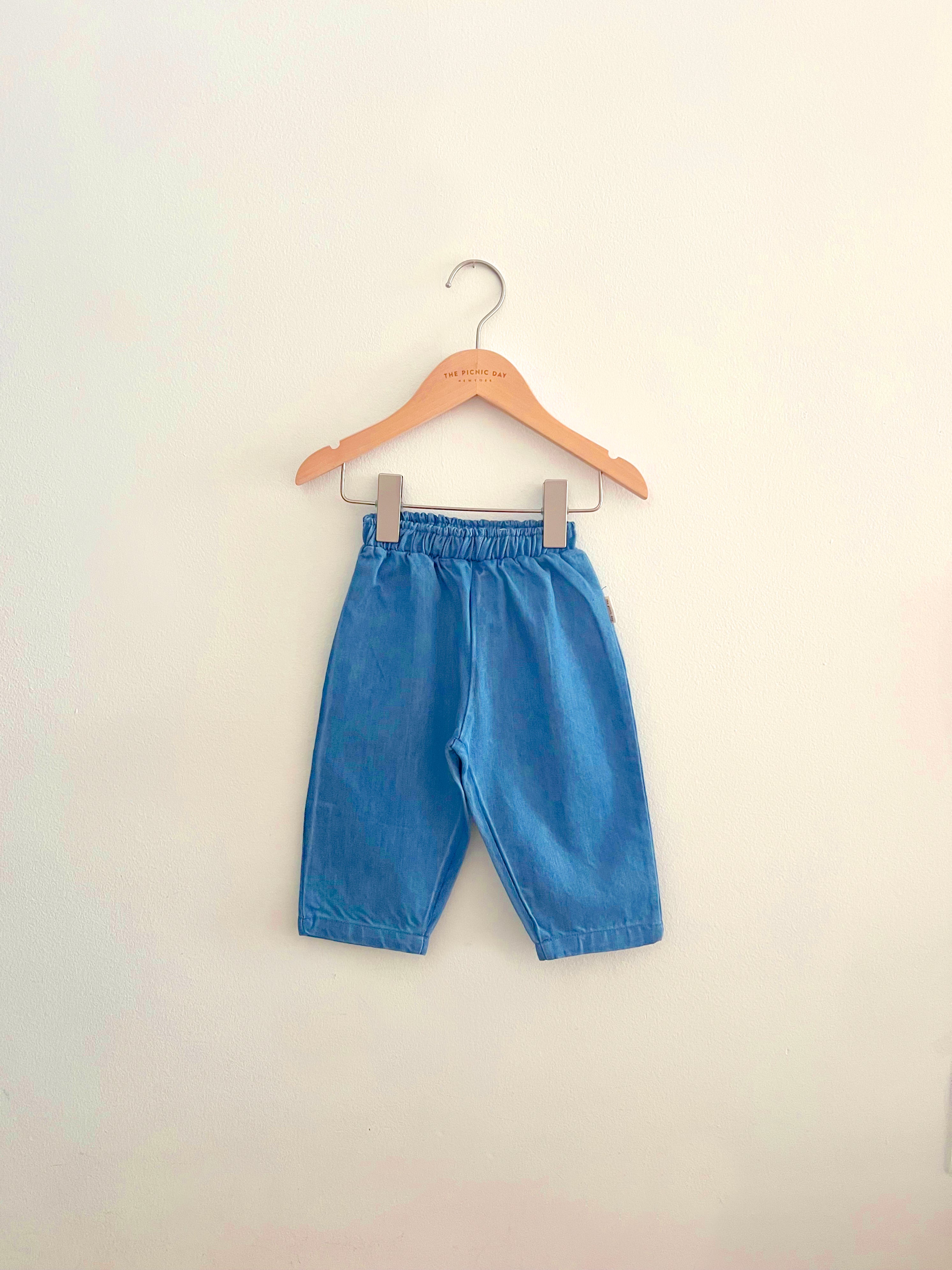 You asked for it, and we made it- the most requested easy slip on pants in vintage-looking blue denim. The oversized fit gives an adorable look and comfort for your mini. Such a timeless piece to be loved for years, and generations to come!