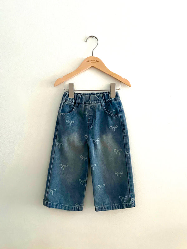 Super cute & practical bow printed wide leg pants. No zipper / button on front = easy on and off. Comes with 2 back pockets.